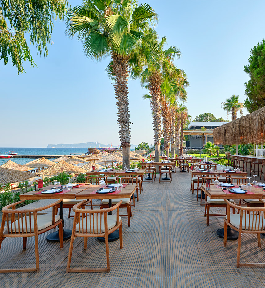 Doğanın Kucağında, Suyun Büyüsüne Kapılın. Yeşilin en huzur veren tonları ve mavinin en derin renkleriyle çevrili bir cennet... Gün ışığının suya yansıyan ışıltısı içinde ruhunuzu tazeleyin, doğanın sakinliğinde bedeninizi yenileyin. Lüks ve ayrıcalık sunan havuzlarımızda serinlerken, masmavi denizin kenarında doğanın kucaklayıcı dokunuşuyla buluşun.