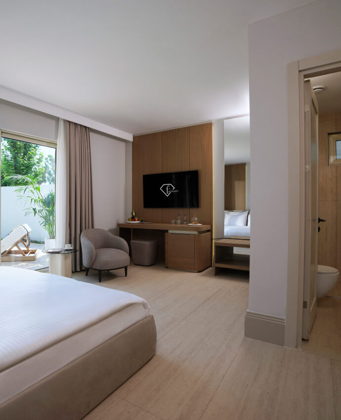 Geniş odalar ve özel atmosferiyle, bu yaşam alanı her ihtiyacınızı karşılayacak şekilde tasarlandı. Tatilinizi, sevdiklerinizle birlikte unutulmaz kılacak tüm ayrıntılar bu odada sizi bekliyor.