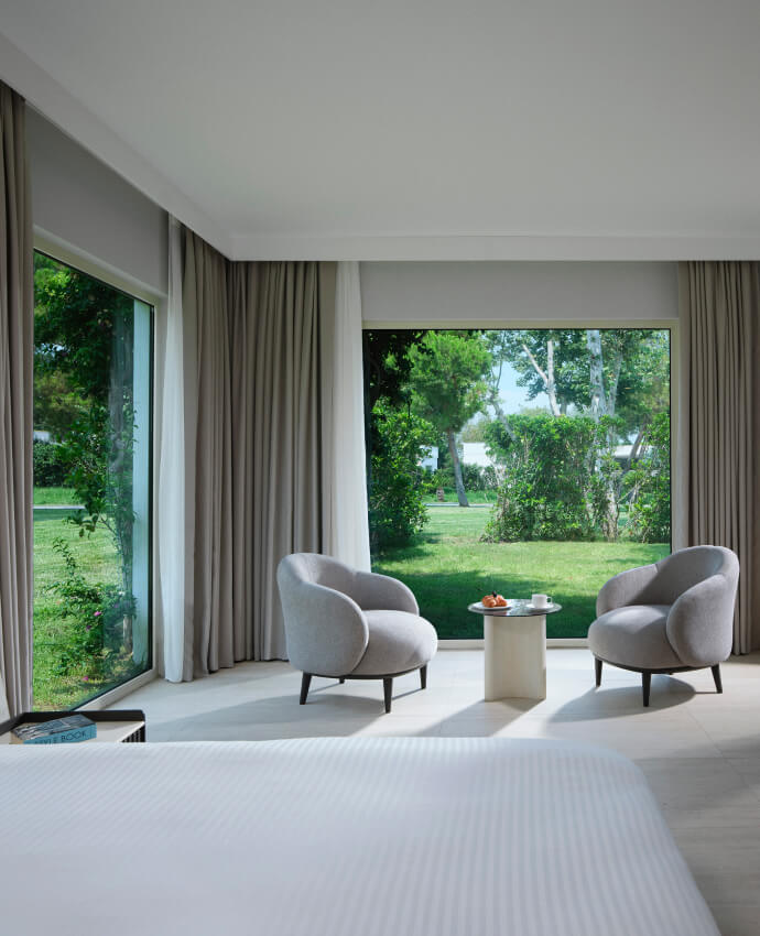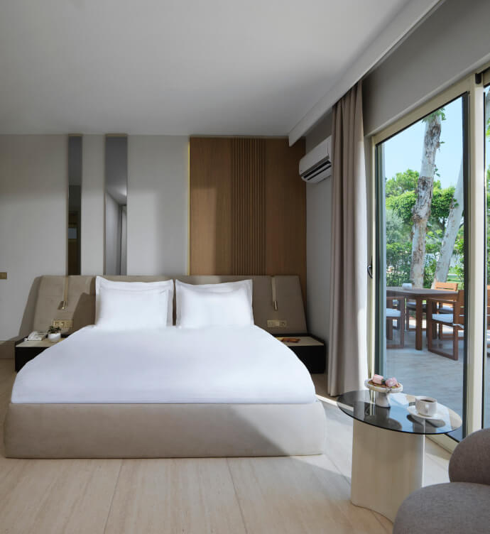 Family Garden Suite, 220 m² genişliğiyle aileniz veya dostlarınızla birlikte rahatça vakit geçirebileceğiniz geniş bir alan sağlar. Üç yatak odası ve oturma odasıyla, her anınızı rahatça geçirebileceğiniz bir ortama sizleri daveti ediyoruz. Bahçe alanında bulunan ortak havuza erişim imkanıyla, günün her saatinde serinleyebilir ve tatilin keyfini çıkarabilirsiniz. Bu geniş yaşam alanı, dostlarınız ile birlikte rahatça eğlenceli anlar geçirmeniz için ideal. Bahçenin sakin atmosferinde dinlenebilir, ortak havuzda serinleyebilirsiniz.
