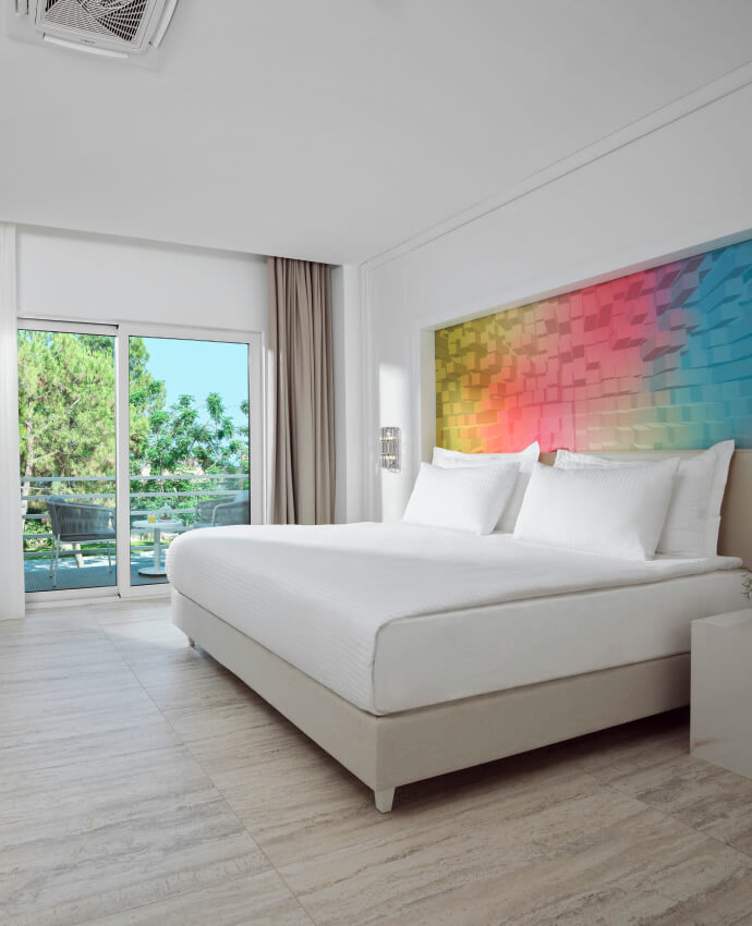 Duplex Suite, yatak odası ve oturma odasıyla hem rahatlık hem de genişlik sunuyor. Burada, ailenizle rahatça vakit geçirebileceğiniz size özel ayrı bir alan bulacaksınız. Hem üst katındaki yaşam alanı hem de alt katındaki geniş oturma odası, tatilinizde her açıdan ayrıcalıklı hissetmenizi sağlayacak. Bu geniş alanda her anınızı dilediğiniz gibi geçirebilmeniz için ideal bir ortam sunuyoruz.