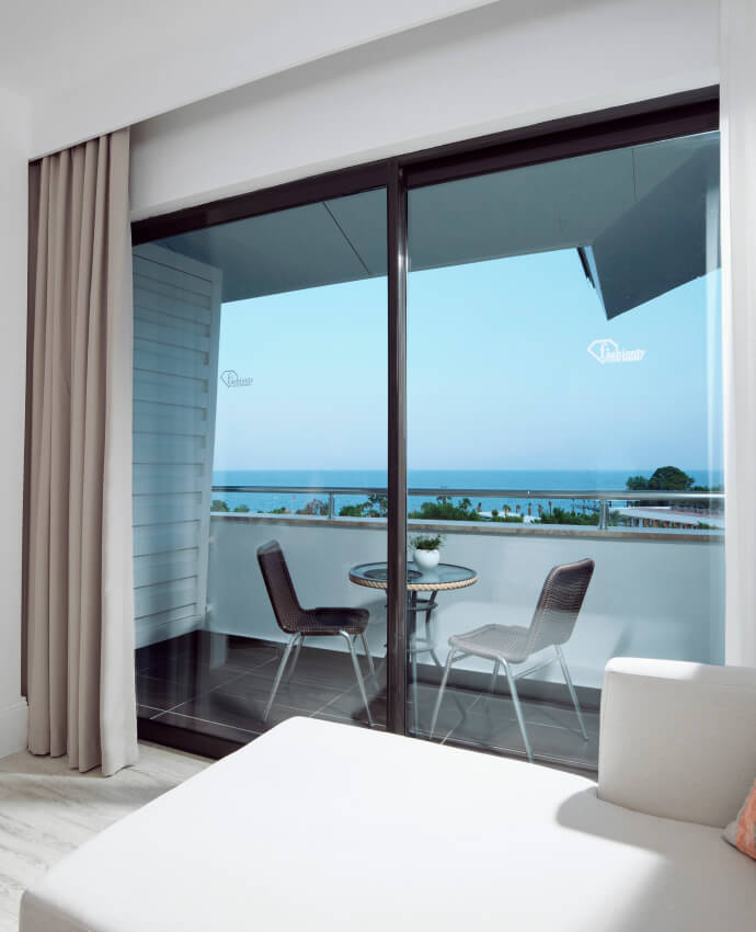 Deluxe Deniz Manzaralı odamız, her detayında özen ve zarafet barındıran bir konaklama deneyimi vaat ediyor. 42 m² genişliğindeki odada, günün her saati denizin sakinleştirici etkisiyle dinlenebilirsiniz. Konforlu yatakları, şık dekorasyonu ve geniş penceresinden sunduğu deniz manzarasıyla odanız, tatilinizi unutulmaz kılacak bir sığınak olacak.