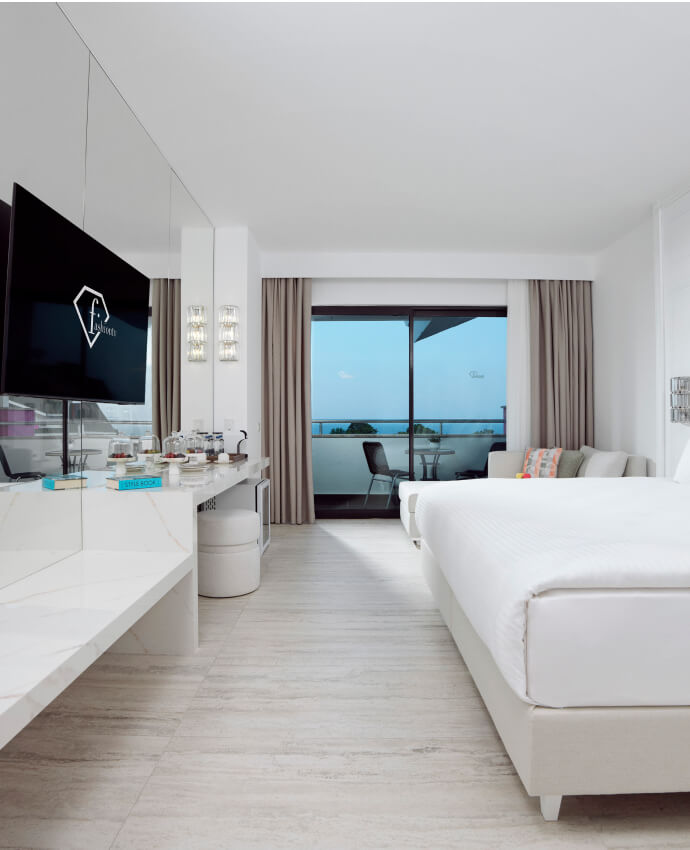 Deniz manzarası eşliğinde her anınızı değerli kılacak odamız, tatilinizin her anında huzuru ve neşeyi bir arada hissettirecek!